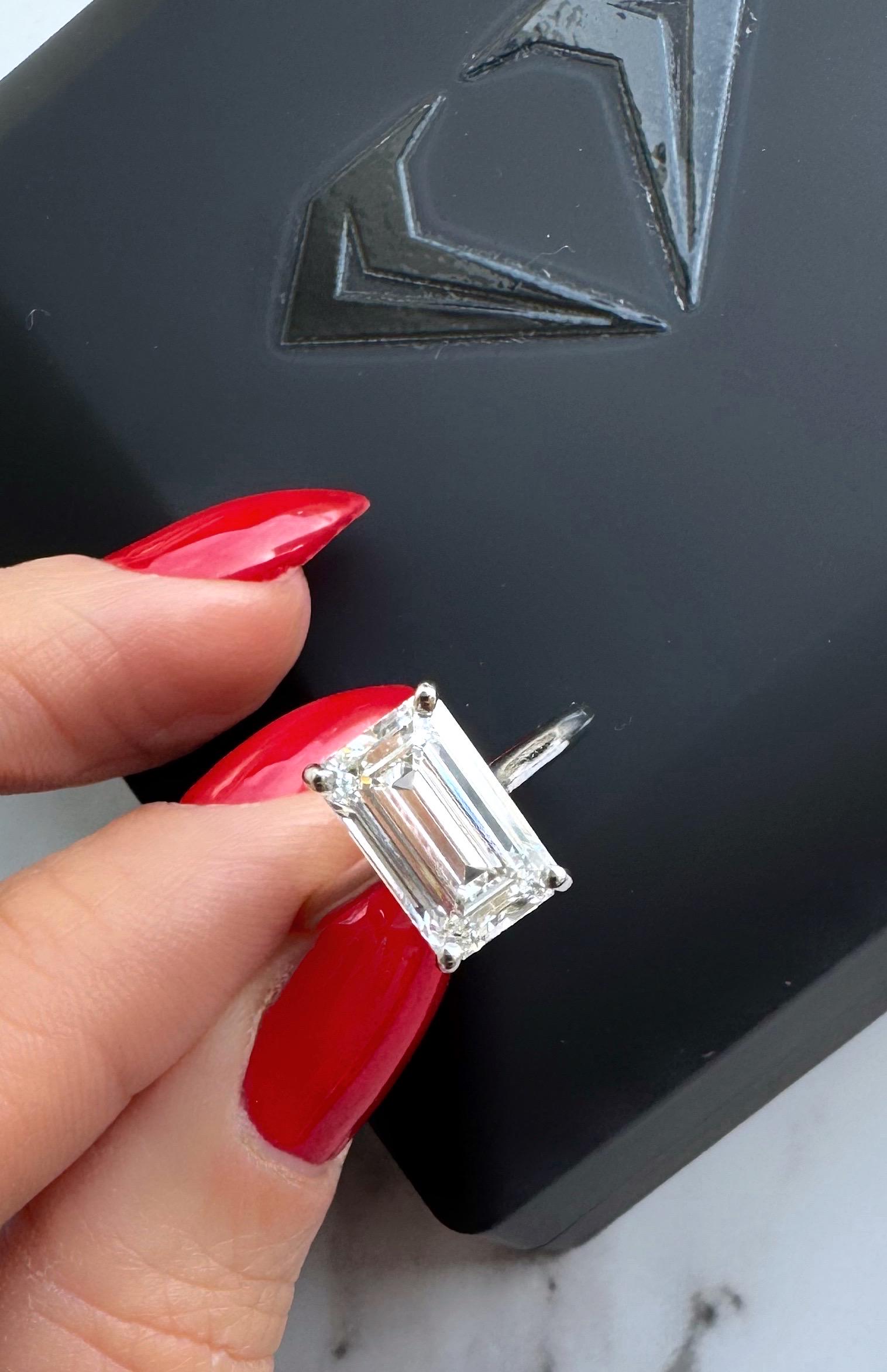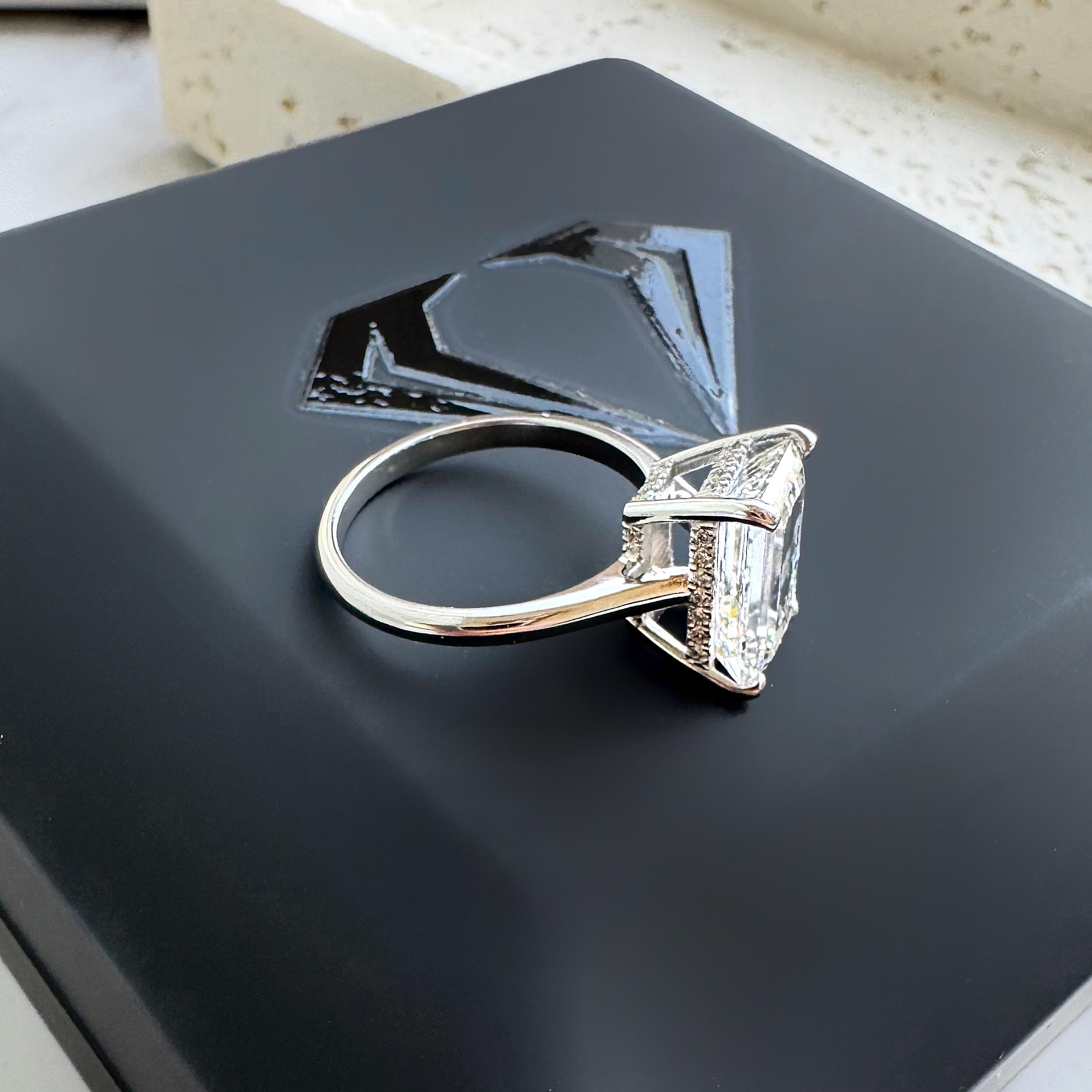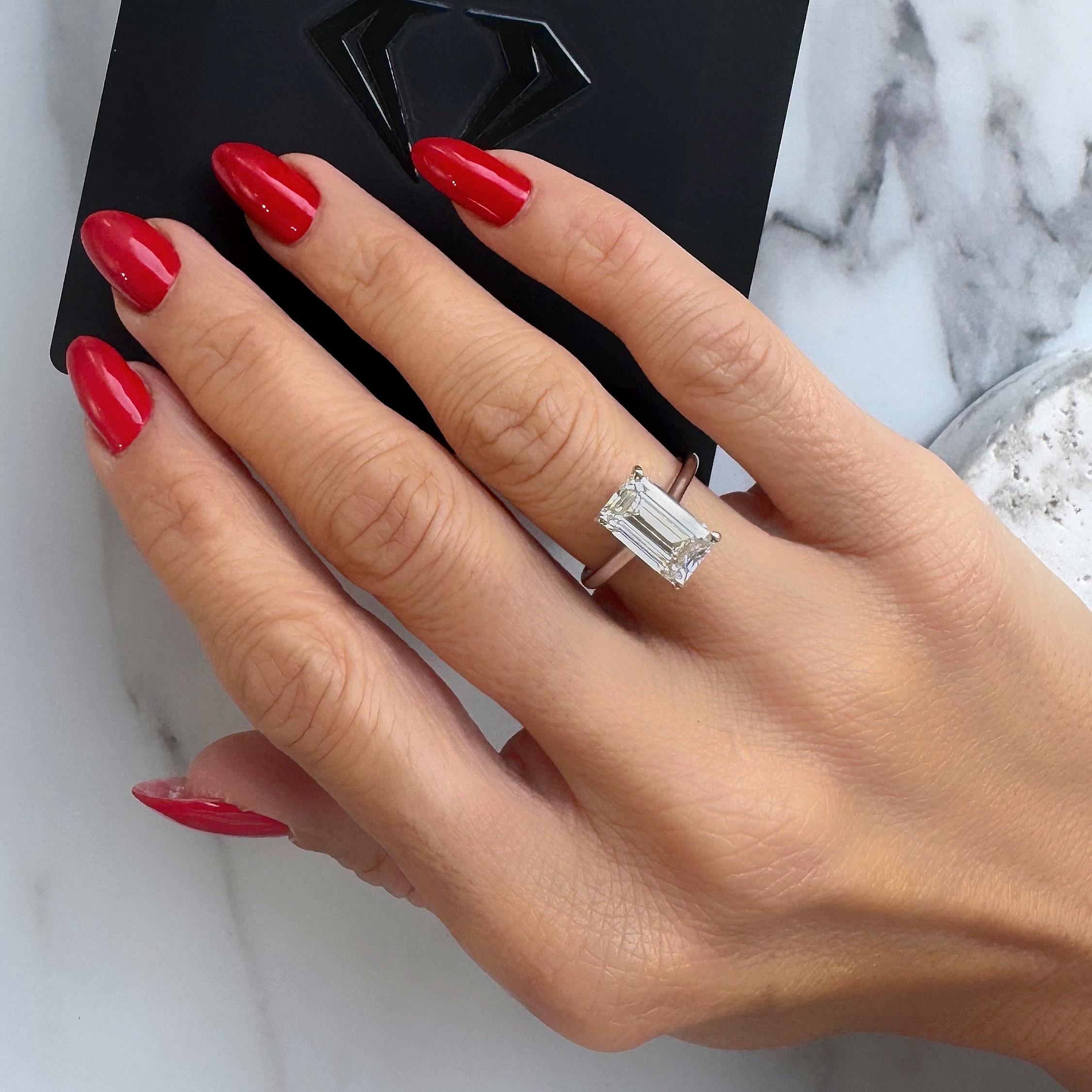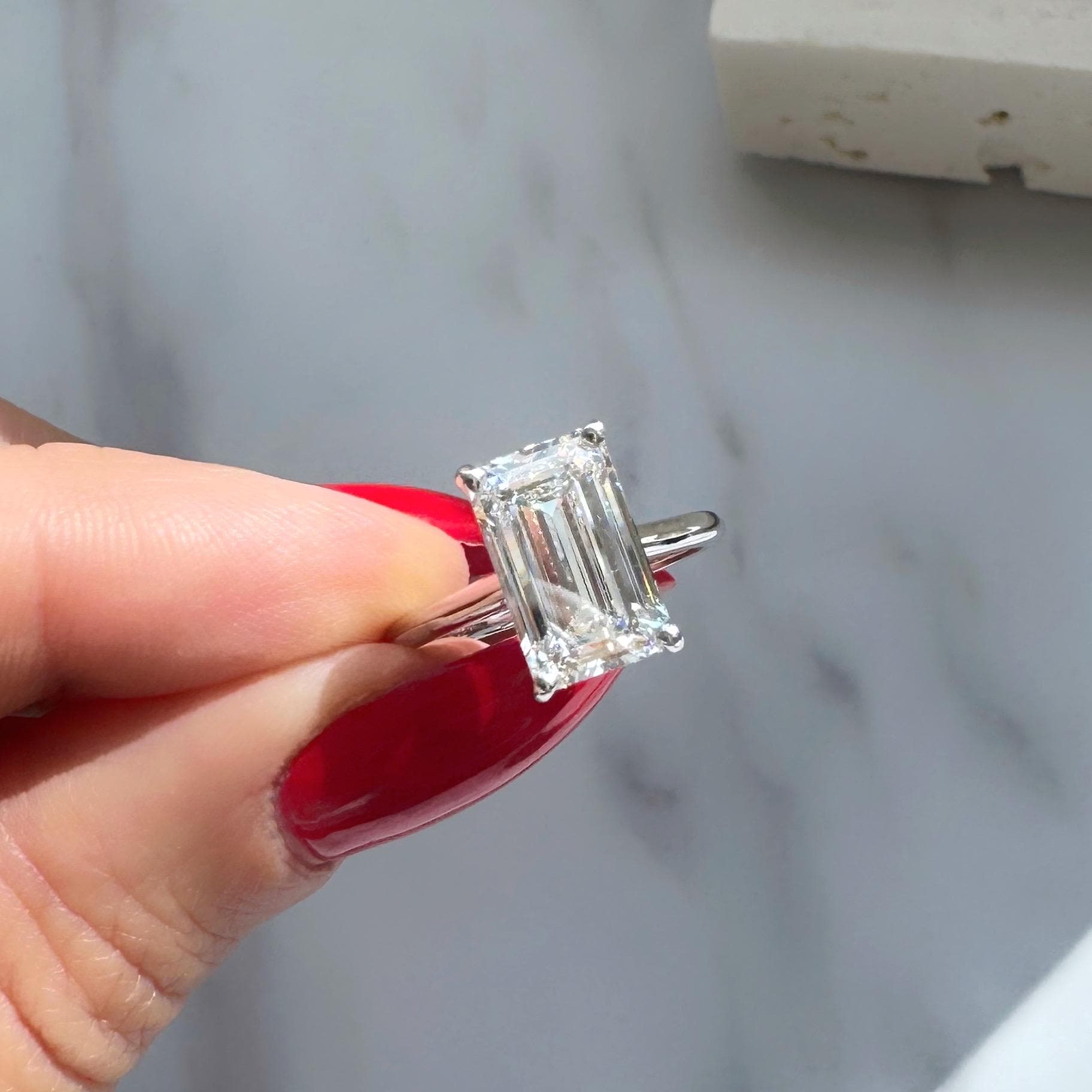 4 Carat E/VS1 IGI Emerald Lab Diamond Ring, Double Diamond Hidden Halo Setting, Big Emerald Engagement Ring, 14k White Gold Clean Plain Band